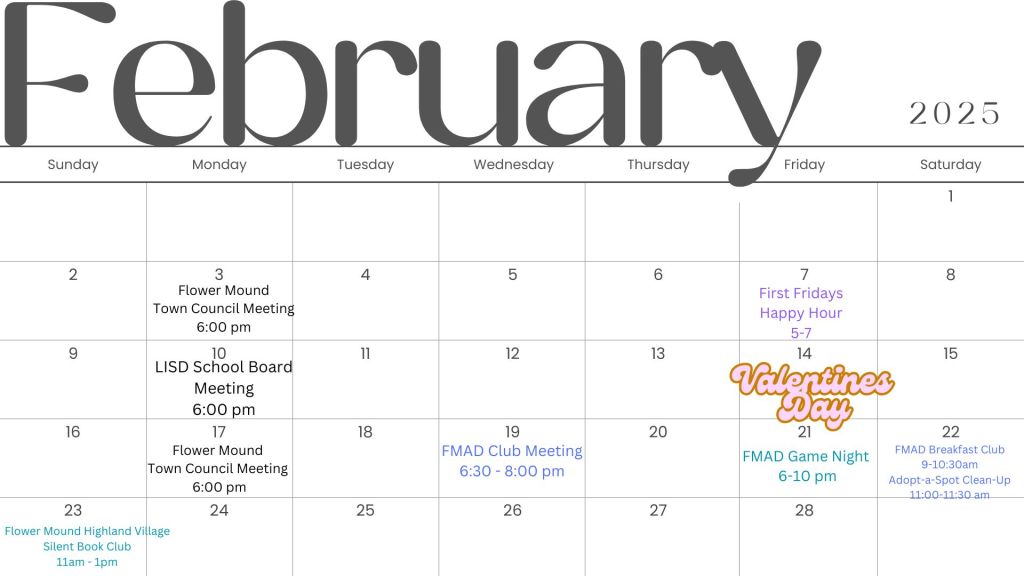 Where: FMAD’s Adopt-a-Spot located at NE corner of Dixon Ln & Long Prairie Rd. 6000 Long Prairie Rd, Flower Mound, TX 75028