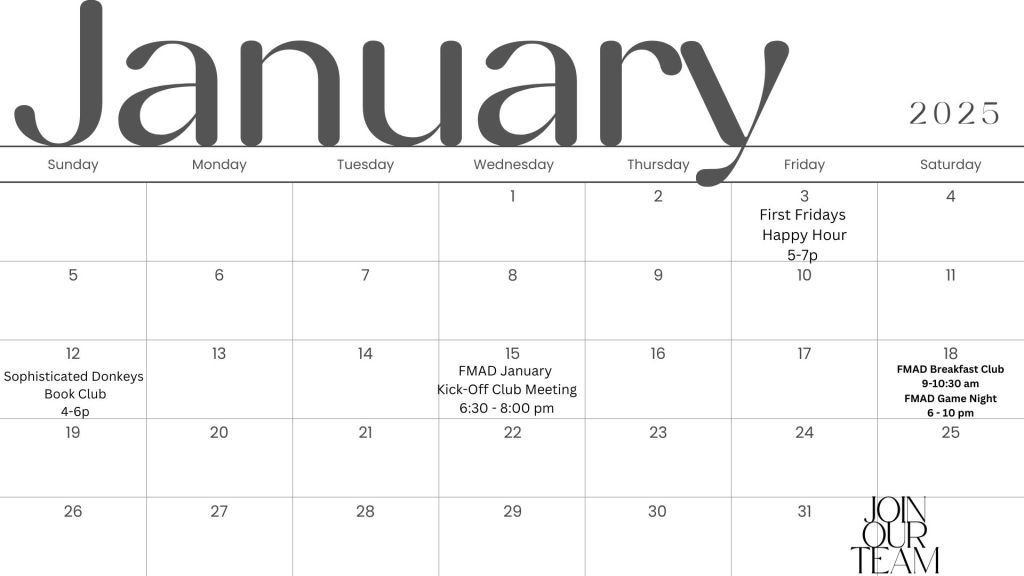 Let’s be doers. Last month we all made our resolutions for change here in our little corner of this county, this state, this nation. Let’s continue to come together and continue to work together this month to bring about LASTING change. We need each other to do this. We need community. Which is why, beyond our monthly club meeting, we have created even more opportunities to come together, work together, and get to know each other better this month. So mark your calendars (or use the attached calendar we have marked for you) and make your plans to join us!