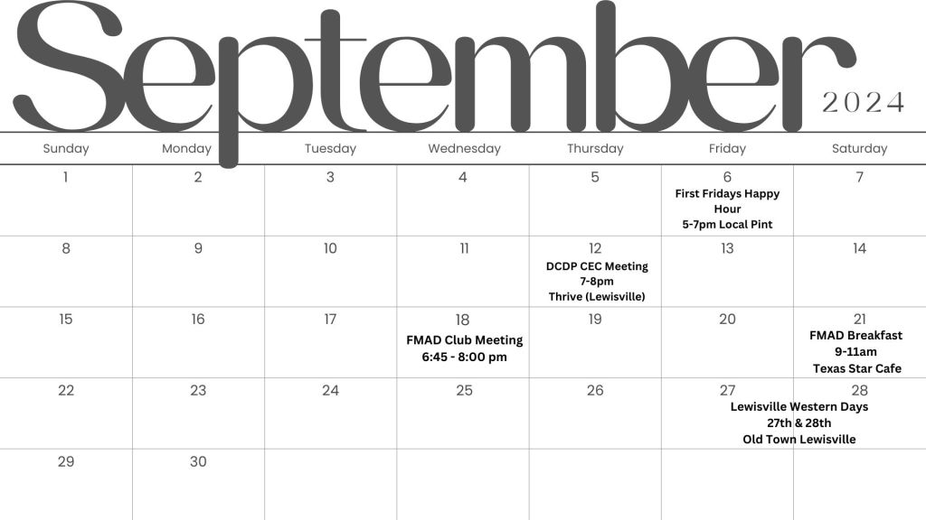Where: One Way Driving School 1720 S. Edmonds Ln., Lewisville, TX, 75067 ***Our newish meeting space is down the stairs, not up the ramp. Small signs with FMAD on it are strategically placed just prior to the meeting to help you along ***